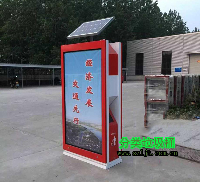 戶外太陽能綠色環(huán)保廣告垃圾桶生產(chǎn)制作常用的材質(zhì)有冷軋鋼、不銹鋼、玻璃鋼;產(chǎn)品造型經(jīng)典時尚,整體結(jié)構(gòu)牢靠,箱體箱底連體式設(shè)計,底座可固定地上,抗打擊,抗風(fēng)力。控制箱體高度,廣告桶高度設(shè)計在 1.8 米左右,符合城市規(guī)劃要求。獨特的抽屜式斜插內(nèi)桶減輕環(huán)衛(wèi)工人清理勞動強(qiáng)度,投口與清理口一體設(shè)計,便于垃圾入箱及清理。廣告垃圾箱具有投入成本低,直接受眾效果好。