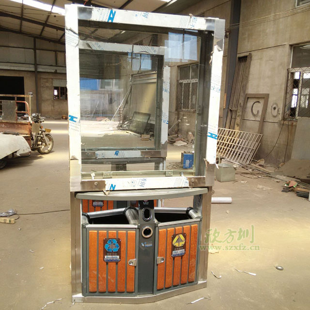 ? 不銹鋼廣告垃圾桶生產制作常用的材質有冷軋鋼、不銹鋼、玻璃鋼;產品造型經典時尚,整體結構牢靠,箱體箱底連體式設計,底座可固定地上,抗打擊,抗風力。控制箱體高度,廣告桶高度設計在1.8米左右,符合城市規劃要求。獨特的抽屜式斜插內桶減輕環衛工人清理勞動強度,投口與清理口一體設計,便于垃圾入箱及清理。廣告垃圾箱具有投入成本低,直接受眾效果好。