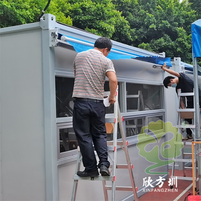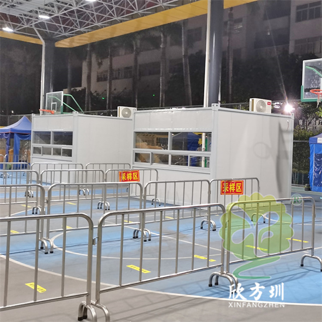 這批可移動核酸檢測采樣亭彩鋼板活動房,分布在龍華區(qū)福城街道幾個社區(qū),大水坑,章閣社區(qū),茜坑社區(qū),桔塘社區(qū),興富社區(qū) 福民社區(qū),共37個。單人采樣房具體的尺寸是2000*2000*2700mm,雙人采樣規(guī)格4000*3000*2700mm。集裝箱式,使用方便,制作快捷,配備風(fēng)扇,空調(diào),雨棚和擋雨板,照明,隔熱,防潮,等功能。