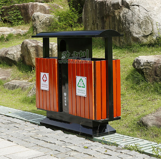 ? 防腐木,是將普通木材經過人工添加化學防腐劑之后,使其具有防腐蝕、防潮、防真菌、防蟲蟻、防霉變以及防水等特性。能夠直接接觸土壤及潮濕環境,經常使用在戶外地板,工程,景觀,防腐木花架等,供人們歇息和欣賞自然美景,是戶外園林景觀休閑椅和鋼木垃圾桶的理想材料。? 深圳鋼木分類垃圾桶都是采用優質的鍍鋅板和國產木制作而成的桶身采用室外塑粉靜電噴涂,木條表面采用抗紫外線丙稀酸油漆多層噴涂,欣方圳的鋼木垃圾桶不僅非常耐用,即使在炎熱的陽光暴曬下,即使經過風吹雨打也很少會出現老化現象,并且可以給客戶定制生產各種各樣的外型設計。