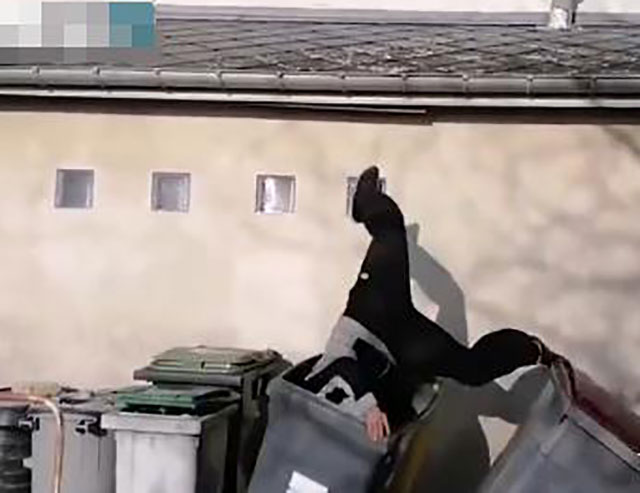 當前位置:首頁 > 分類宣傳 > 高墻往下跳滑倒扎進垃圾桶,跑酷也要注意安全
