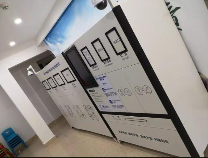 同時還新奇地發現一部垃圾分類智能機。使用的時候,只需要點擊屏幕就能選擇投放的垃圾類型。然后對應的門便自動開啟,只需要將垃圾投入其中。