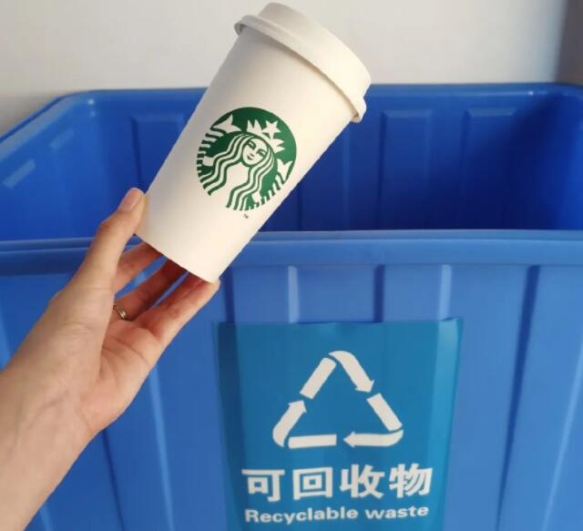 紙杯,塑料杯和杯蓋扔進可回收物桶