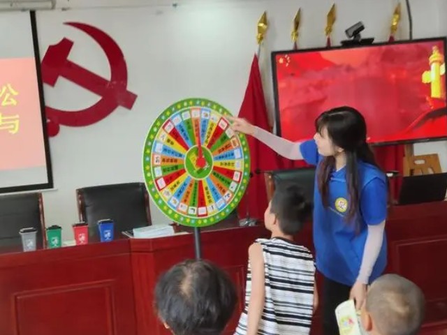 活動(dòng)現(xiàn)場(chǎng)還設(shè)置了“垃圾分類大轉(zhuǎn)盤”互動(dòng)游戲,參與者只需隨機(jī)轉(zhuǎn)動(dòng)大轉(zhuǎn)盤,回答出指針最后指向的垃圾所屬類別,答案正確即可獲得禮品一份。大家興致勃勃,紛紛參與進(jìn)來。不少居民參加完游戲,還意猶未盡地聚在一起討論、學(xué)習(xí)垃圾分類知識(shí)。