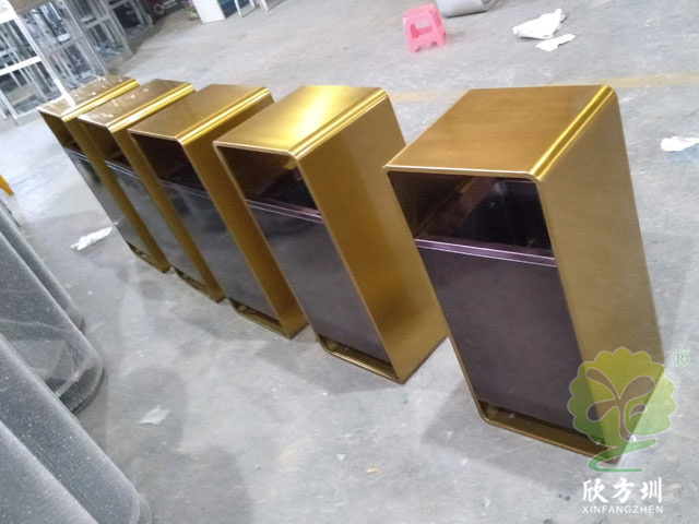 4.細(xì)節(jié)周全,體驗(yàn)升級(jí):煙灰缸集成(可選): 部分款式頂部可集成煙灰缸,滿足不同住戶需求,保持環(huán)境整潔。分類標(biāo)識(shí)(可選): 可定制印刷清晰醒目的垃圾分類標(biāo)識(shí)(如可回收/其他垃圾),引導(dǎo)業(yè)主正確分類,助力環(huán)保。靜音緩降桶蓋(可選): 提升使用體驗(yàn),避免噪音干擾。為什么選擇定制服務(wù)?尺寸精準(zhǔn)匹配: 擺脫“差不多”的尷尬!專業(yè)測(cè)量電梯口可用空間,量身定制長、寬、高,確保垃圾桶放置后既滿足容量需求,又不妨礙通行與消防要求。風(fēng)格專屬打造: 提供多種電鍍色系(玫瑰金、鈦金、黑鈦、香檳金、寶石藍(lán)等)及表面效果(亮光、啞光、拉絲)選擇,確保垃圾桶與小區(qū)電梯廳的裝修風(fēng)格、燈光效果和諧統(tǒng)一,提升整體環(huán)境質(zhì)感。功能按需配置: 根據(jù)小區(qū)具體需求,靈活選擇是否帶煙灰缸、是否做分類標(biāo)識(shí)、是否需靜音桶蓋等,打造最符合使用場(chǎng)景的解決方案。品牌形象植入(可選): 可在桶身定制小區(qū)Logo、名稱或物業(yè)標(biāo)識(shí),強(qiáng)化品牌形象,彰顯管理規(guī)范性。定制流程,清晰高效: