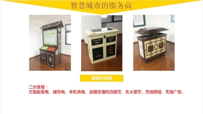 ????今年,這種智能垃圾桶將進(jìn)一步推廣,逐步取代普通垃圾桶。此外,還將在現(xiàn)有基礎(chǔ)上做一些人性化改進(jìn),比如把易拉罐垃圾的投放口設(shè)計成圓形,廢報紙雜志的投放口設(shè)計成長條形,避免市民投錯。