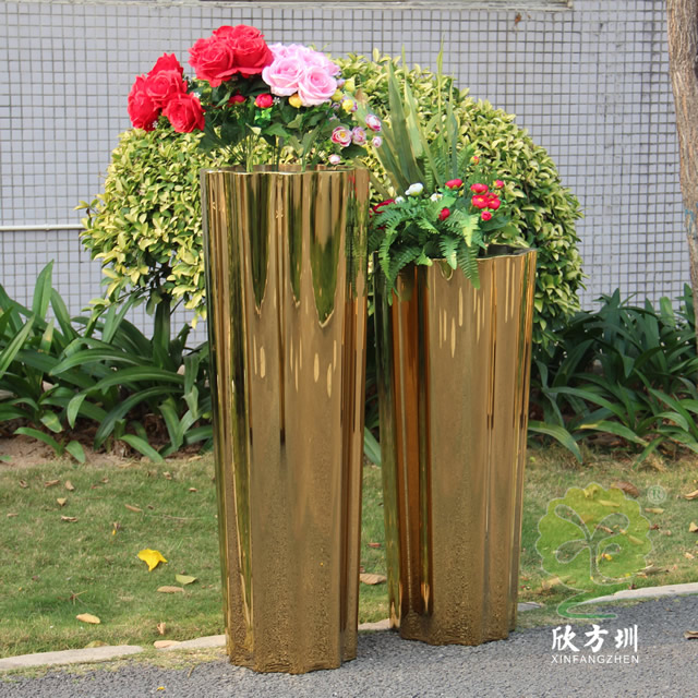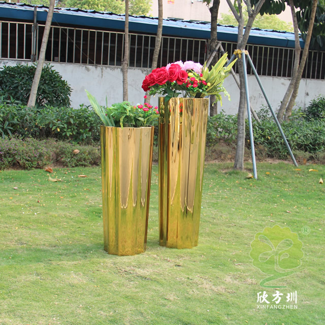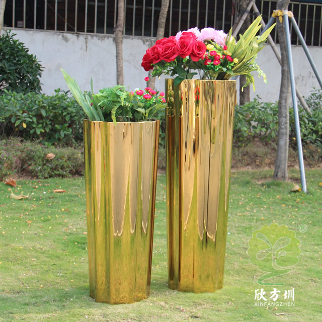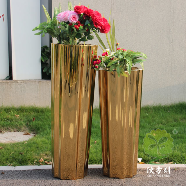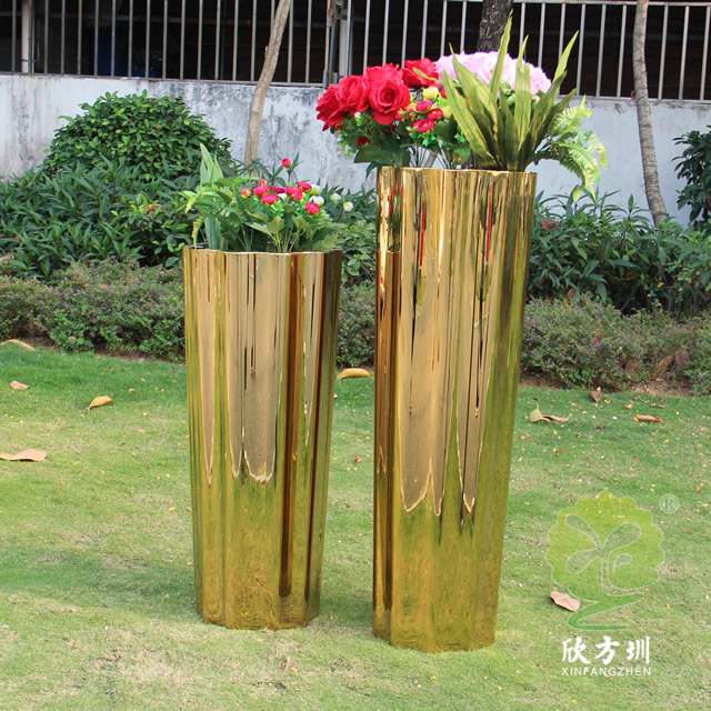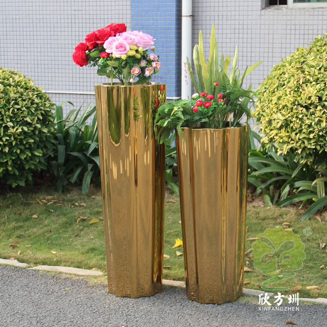 一、室內高瓶鏡面鈦金不銹鋼花盆組合的優點有哪些
