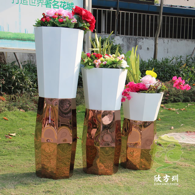 菱形噴塑白色玫瑰金不銹鋼花盆組合