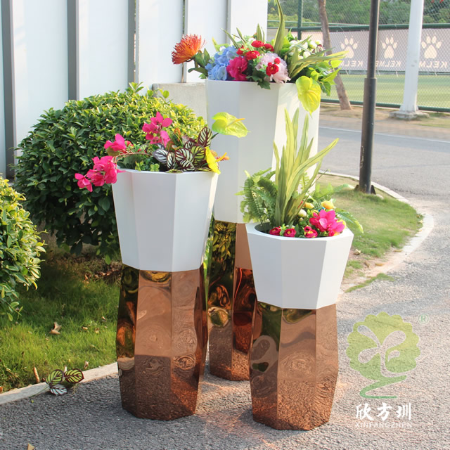 一、菱形噴塑白色玫瑰金不銹鋼花盆組合的優點有哪些
