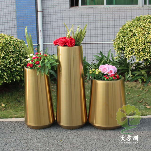 一、室內商場拉絲鈦金不銹鋼花盆組合的優點有哪些