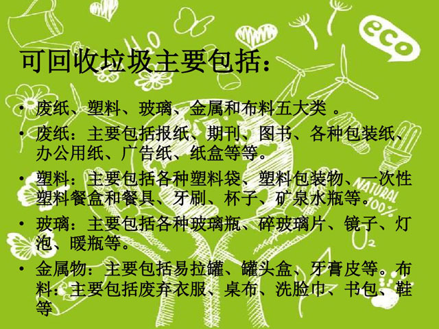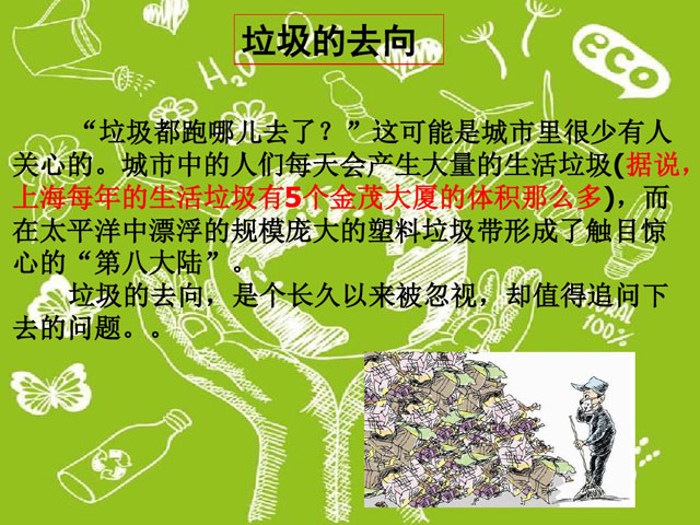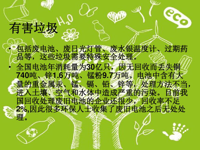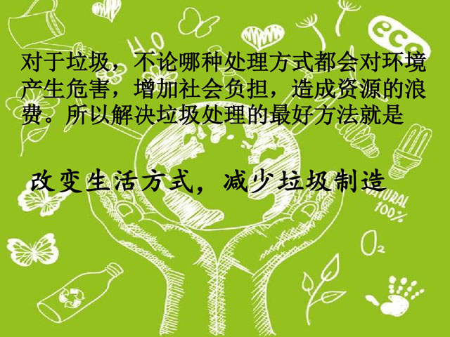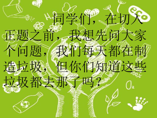 ??? 中國是人口大國,也是垃圾生產大國,可是我國的垃圾回收處理工作卻在國際上非常落后,最重要的原因就是垃圾分類這一步驟出了問題。垃圾分類宣傳任重道遠,不可不重視 ,尤其是學校里面的素質教育。一個擁有垃圾分類意識與能力的學生走上社會后,才能成為垃圾環保事業的一份子。以下是初一垃圾分類ppt,希望能幫助學校的初一學生樹立正確垃圾分類觀念。