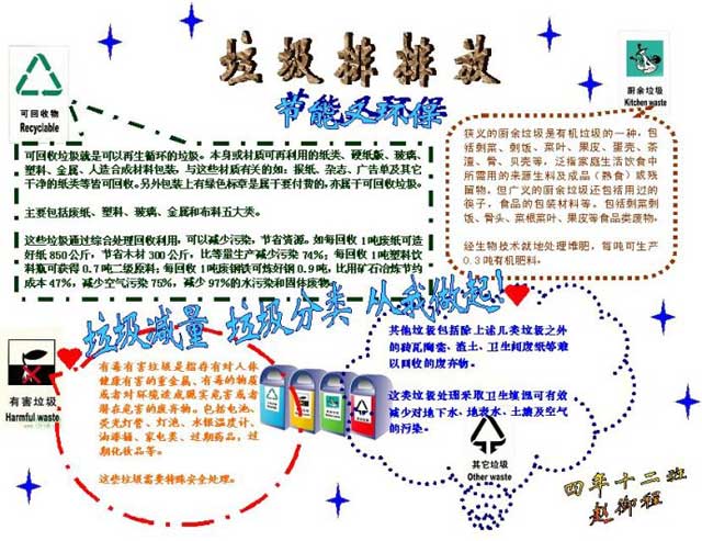 ? ? 我國是世界垃圾最大生產國,但是垃圾處理效果卻落后于大部分國家。對于垃圾來說,無論哪種處理方式都會對環境產生危害,增加社會負擔,造成資源浪費。所以解決垃圾處理問題的最好辦法就是,改變生活方式,減少垃圾制造。于此,垃圾分類宣傳必不可少,以下是學生常用的環保垃圾分類手抄報,可以幫助學生理解生活垃圾分類的知識與現狀。