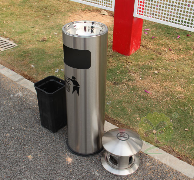 ?  C-620圓形煙灰柱垃圾桶采用優(yōu)質(zhì)不銹鋼剪切、組裝、焊接、絲印而成,不銹鋼具有很好的堅(jiān)固耐用,防水防銹,時(shí)尚美觀作用。它包括外套管、煙灰投放口、內(nèi)筒、煙灰盒。外套管的底端固定連接在支座上,外套管的側(cè)壁上設(shè)有煙蒂置入口,內(nèi)套管用于集中收納從外套管的煙蒂置入口投入的煙蒂,內(nèi)套管設(shè)在外套管的內(nèi)管腔中,內(nèi)內(nèi)套管的開口端朝上,煙蒂置入口與內(nèi)套管的開口相連通,以使得從煙蒂置入口投入的煙蒂可從內(nèi)套管的開口端落入到內(nèi)套管的內(nèi)管腔中;