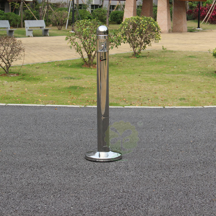 廠家定制柱式不銹鋼滅煙柱采用優(yōu)質(zhì)不銹鋼剪切、組裝、焊接、絲印而成,它包括外套管、支座、內(nèi)套管、煙灰盒、底座。外套管的底端固定連接在支座上,外套管的側(cè)壁上設有煙蒂置入口,內(nèi)套管用于集中收納從外套管的煙蒂置入口投入的煙蒂,內(nèi)套管設在外套管的內(nèi)管腔中,內(nèi)內(nèi)套管的開口端朝上,煙蒂置入口與內(nèi)套管的開口相連通,以使得從煙蒂置入口投入的煙蒂可從內(nèi)套管的開口端落入到內(nèi)套管的內(nèi)管腔中;