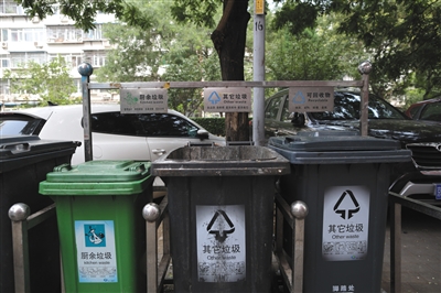 昨天,在東城區崇外街道新怡家園社區內,可回收垃圾、廚余垃圾、其他垃圾這三種類別的垃圾桶在小區內一字排開,垃圾分類指導員正在幫助居民指導垃圾分類。崇外街道對接了專業的垃圾處理公司,廚余垃圾可以做成肥料進行二次利用,其他垃圾則經過專業處理后進行填埋。這樣的垃圾分類站覆蓋了崇外街道內的12個小區。