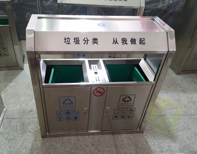 這款垃圾桶采用內外桶雙層模式,內桶使用玻璃鋼內桶,優點是質量輕,堅固耐用,防水防秀,相對于鐵皮內桶來說,使用時間更長,性價比更高。外殼使用優質304不銹鋼作為原材料,擁有良好的防腐防銹功能,使用先進的激光切割機、折彎機經過一系列專業精準的切割、折彎、組裝、焊接、打磨、絲印步驟處理而成。