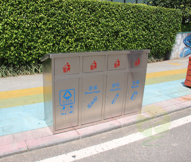 戶外不銹鋼推蓋四分類垃圾桶是一款三分類不銹鋼垃圾桶,分別收納廢紙、塑料、金屬和其他垃圾,廢紙塑料是我們生活中最常見的可回收垃圾種類,而且回收價值非常大。據環保專家介紹,一噸廢紙可生產品質良好的再生紙850公斤,節省木材3立方米,節省化工原料300公斤,節煤1.2噸,節電600度,使用廢紙造紙比原木紙漿可減少75%的空氣污染、35%的水污染、60%的用水、40%的能源消耗,并可減少大量的廢棄物。一噸廢紙=800千克再生紙=17棵大樹。 所以說垃圾分類回收對于環境保護非常必要。