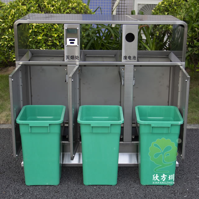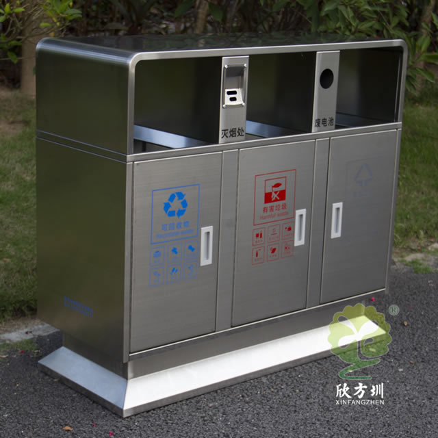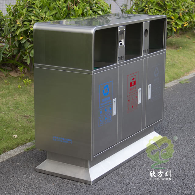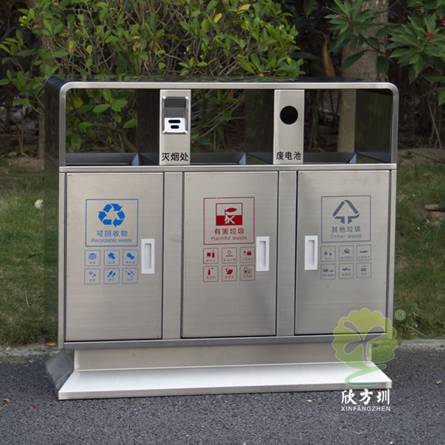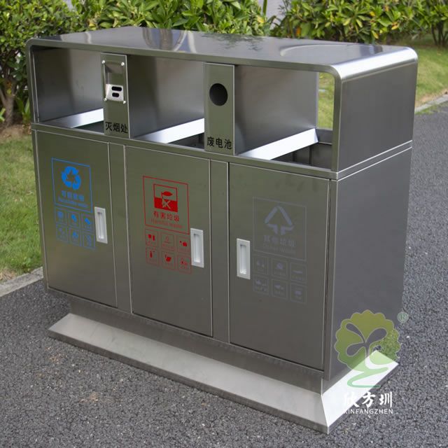 戶外校園三分類不銹鋼垃圾箱的優(yōu)點: