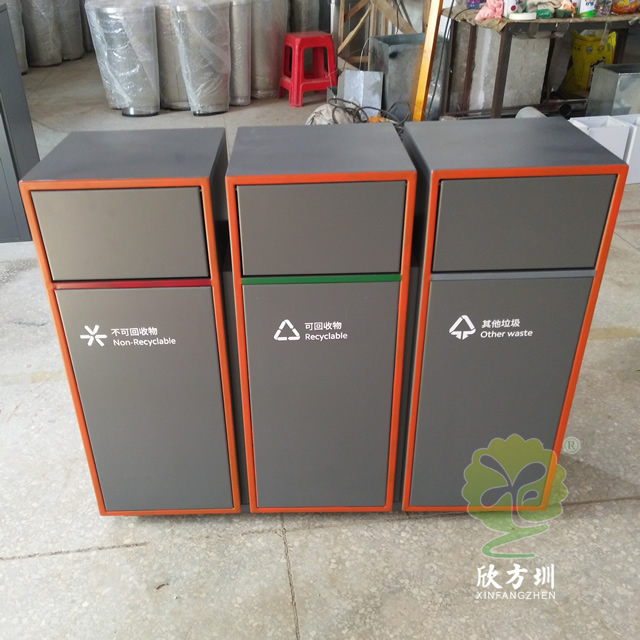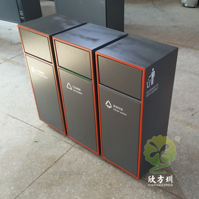 噴塑組合式不銹鋼分類垃圾箱采用201#,202#,304#優質不銹鋼材料模壓成型,堅固耐用,不易破損;耐火安全,抗高低溫,適合各種惡劣氣候條件;金屬亮澤,高雅美觀,廣泛適用于各種機場、商場高檔場所;內外表面光潔,減少垃圾殘留,易于清潔;配置鍍鋅板內桶,便于垃圾清倒;激光切割開料,尺寸精準,投口無縫焊接成型,打磨拋光處理圓滑不割手。
