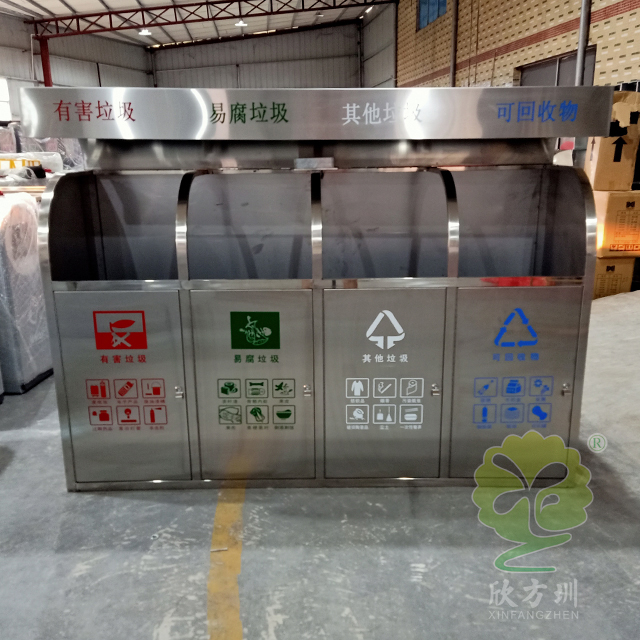 戶外小區大容量四分類不銹鋼垃圾箱型號:C707-2,采用201#,202#,304#優質不銹鋼材料模壓成型,堅固耐用,不易破損;耐火安全,抗高低溫,適合各種惡劣氣候條件;金屬亮澤,高雅美觀,廣泛適用于各種機場、商場高檔場所;內外表面光潔,減少垃圾殘留,易于清潔;配置鍍鋅板內桶,便于垃圾清倒;激光切割開料,尺寸精準,投口無縫焊接成型,打磨拋光處理圓滑不割手,欣方圳不銹鋼分類垃圾桶制作師傅有著多年經驗的熟手,每一道環節工藝成熟,質量可靠,確保客戶如期交付驗收。