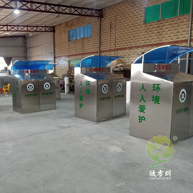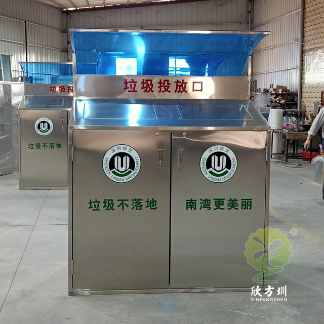 社區帶擋雨棚不銹鋼分類垃圾桶