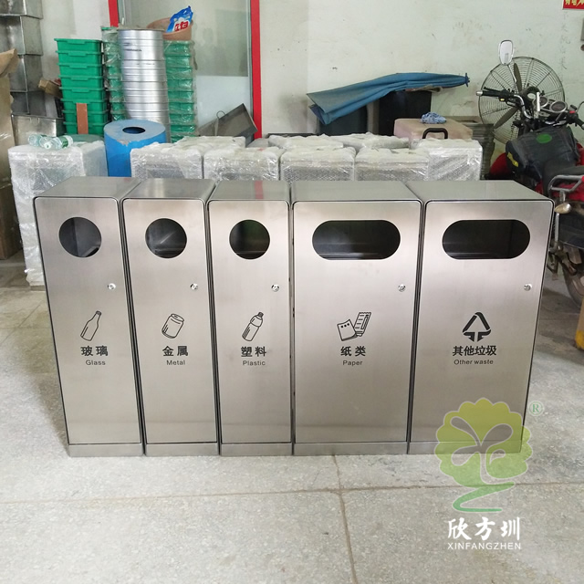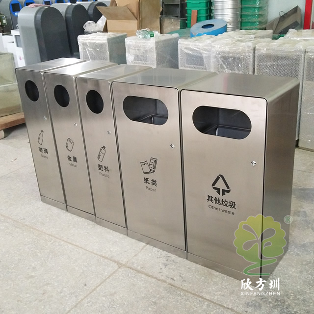 卓越品質(zhì)、精湛工藝‘、時(shí)尚外觀是XFZ-F343四加一組合式不銹鋼分類垃圾桶的優(yōu)點(diǎn),它以優(yōu)質(zhì)201#不銹鋼剪裁、組裝、焊接而成,卻渾然天成、嚴(yán)絲合縫、看不到一點(diǎn)縫隙和焊接痕跡。完美的折彎曲線非常考驗(yàn)制作工人的手藝,這種曲線不僅僅代表了美的藝術(shù),更是實(shí)際使用過(guò)程中積累的智慧與經(jīng)驗(yàn)結(jié)晶。它能很好的防止人群磕傷碰傷,保護(hù)附近人流的安全。加厚的桶身讓垃圾桶更加的堅(jiān)固耐用,看起來(lái)更高檔更有質(zhì)感,這種高檔優(yōu)質(zhì)的外形讓它非常適合擺放于辦公樓、酒店大堂、商場(chǎng)等奢華場(chǎng)所。桶底配有防滑墊,無(wú)需使用螺絲就能起著很好的固定作用,還能防止地面刮花,專門為室內(nèi)場(chǎng)所設(shè)計(jì)。