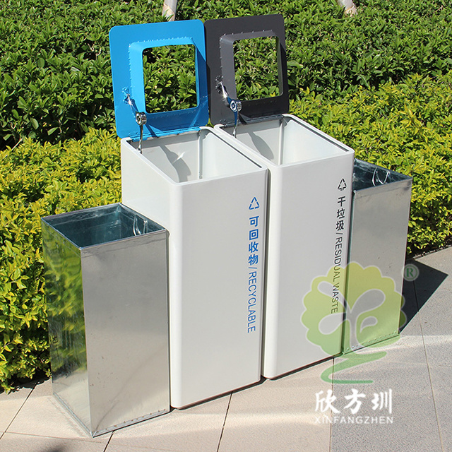 室內商場直投口不銹鋼分類垃圾桶是欣方圳設計生產的一款經典熱銷垃圾桶,這款垃圾桶雖然使用不喜歡制作而成,但是外形采用了方形組合式分類,使其看起來有一股自然大方氣質,特別適合各種商場、電梯口、酒店、寫字樓場景使用。這款垃圾桶外表經過防腐工藝處理,防水防腐蝕、經久耐用、工藝精湛、物美價廉。如果你對這款垃圾桶感興趣,請直接聯系我們報價。