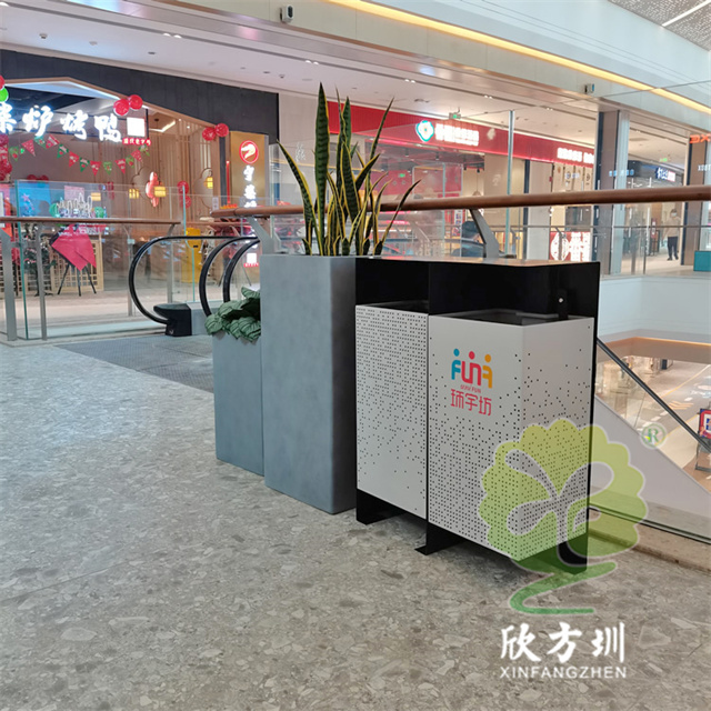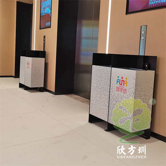 四川商場鏤空加厚不銹鋼分類垃圾桶可以選擇用鍍鋅板、冷軋鋼板或者不銹鋼板制造,這款垃圾桶框架比較厚實能夠防止割到手,表面噴涂噴塑俗稱噴粉,外部框架噴塑黑色箱體噴塑淺灰色,箱體圓點鏤空,這款垃圾桶是一家商場定制了兩款,一款用于商場室內一款用于戶外的廣場,桶身正反面絲印的企業的分類標識。
