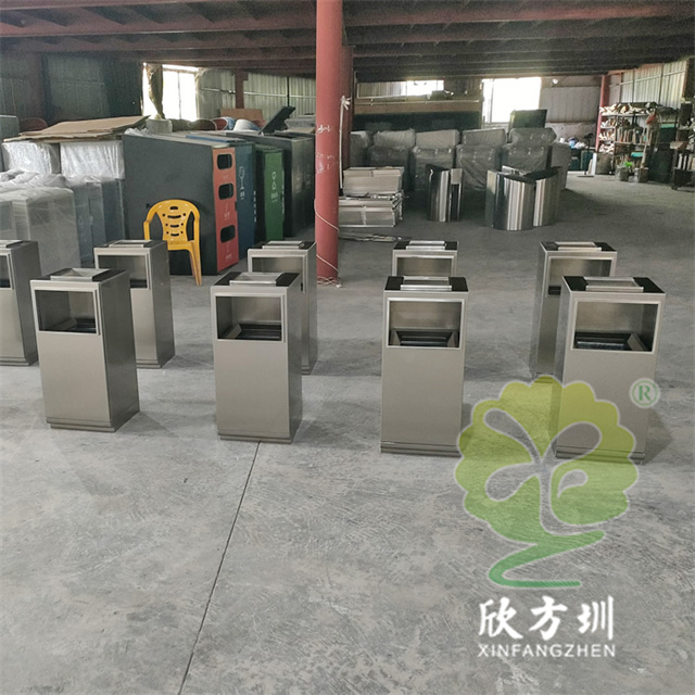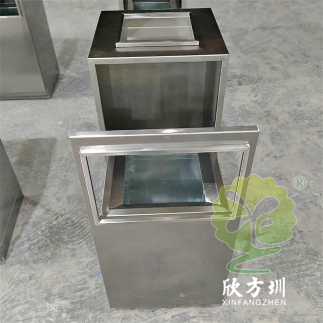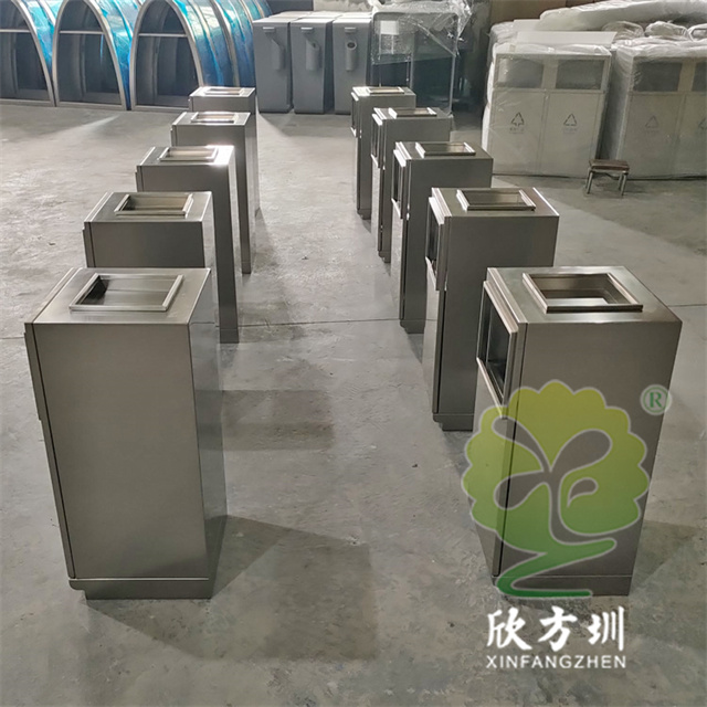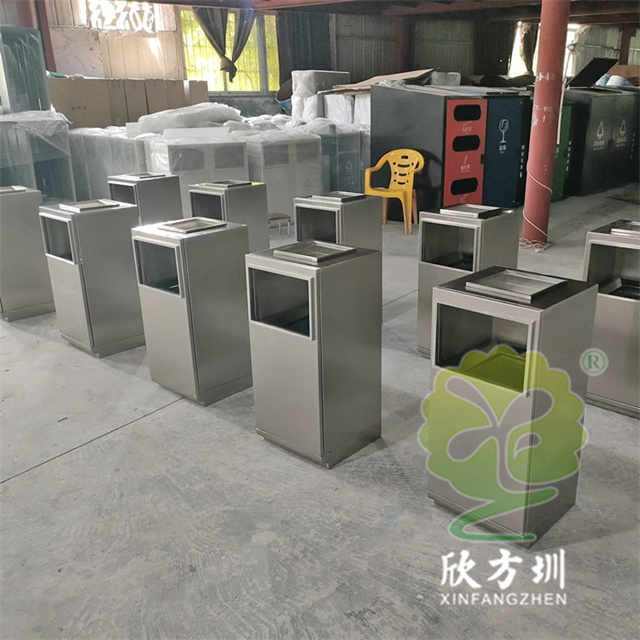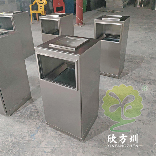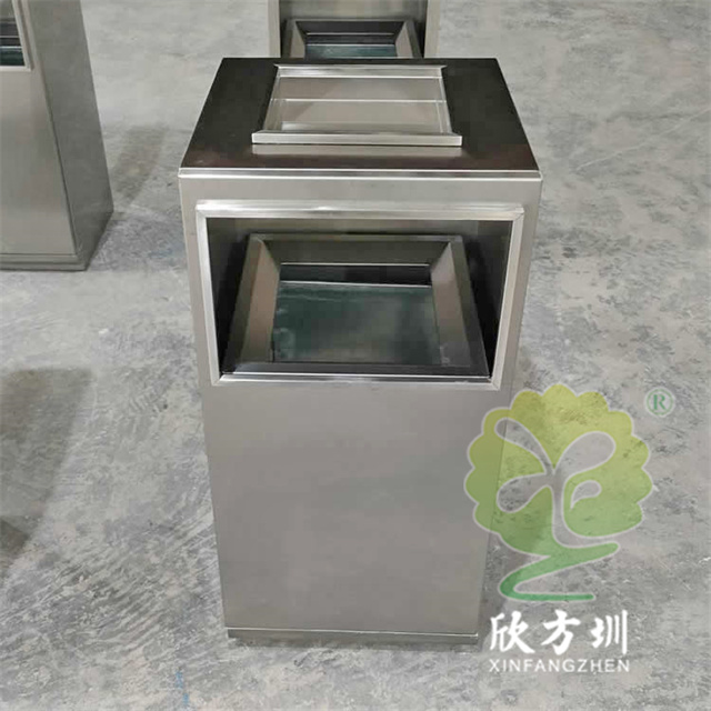 防指紋封油抽拉組合式不銹鋼分類垃圾桶可以使用201或304不銹鋼板制造,方形滑軌抽拉式組合式設(shè)計(jì),表面做了無指紋封油處理,投口方形折邊有效防止割手,頂部位置帶煙灰盅,不需要也可以不要煙灰盅,正面可以絲印分類標(biāo)識(shí)以及企業(yè)logo。