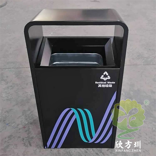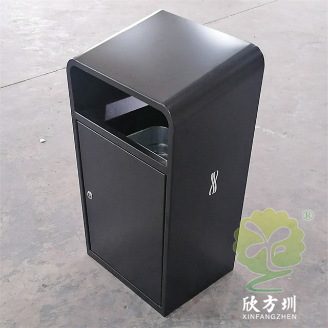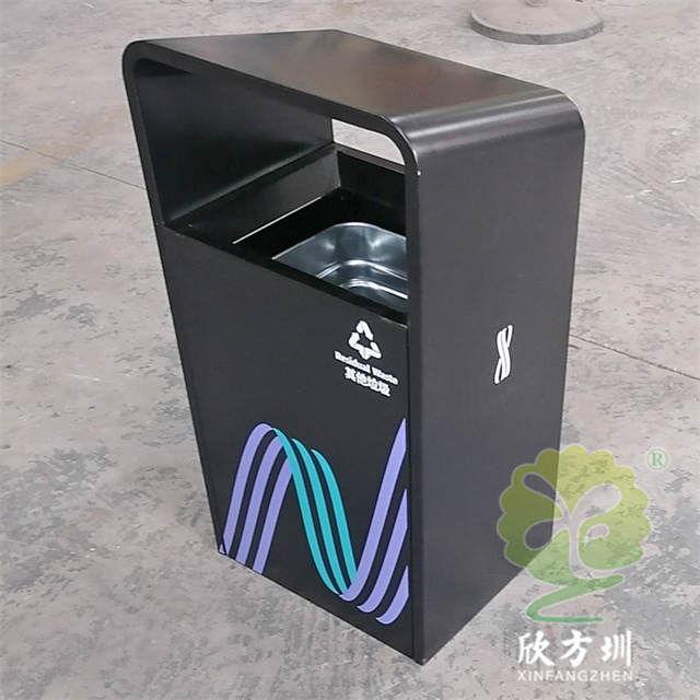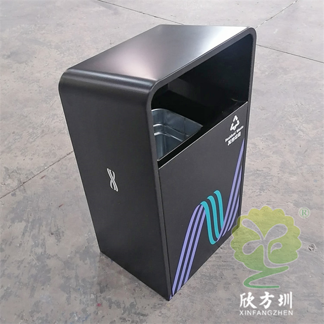 戶外廣場加厚不銹鋼垃圾桶果皮箱這款外筒201不銹鋼 1.5mm 厚度生產(chǎn),桶身整體黑色噴塑烤漆,絲印企業(yè)logo和分類標(biāo)識,UV打印彩色圖案,方形單筒頂部坡面前高后低設(shè)計,背面可以使用三角鑰匙取出內(nèi)置的內(nèi)筒,可以根據(jù)客戶要求定做。