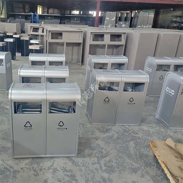 戶外銀色方形雙分類不銹鋼垃圾桶
