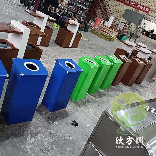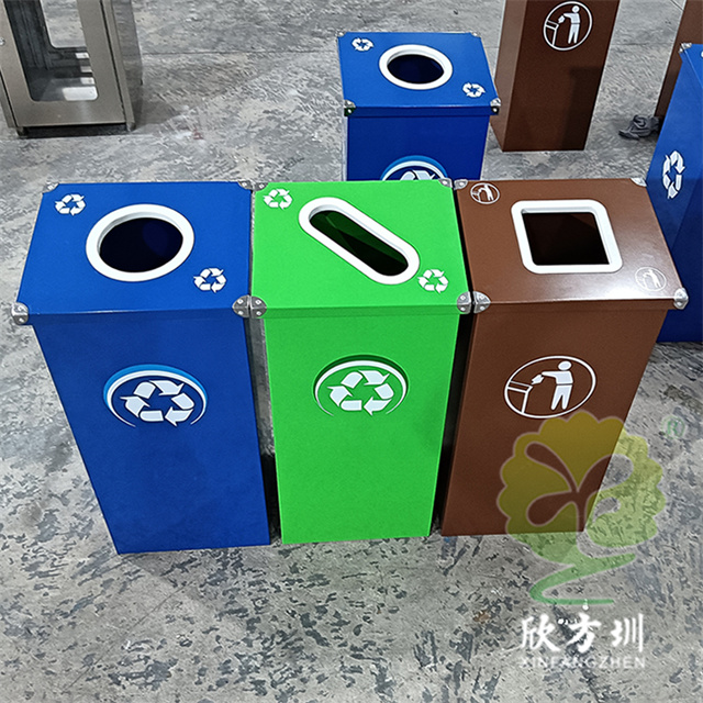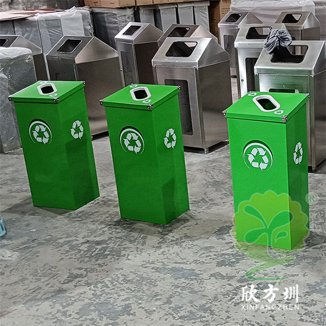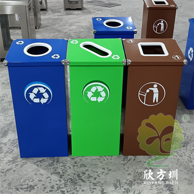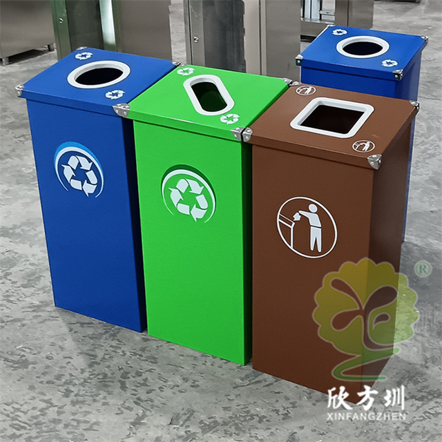 廣東烤漆三色不銹鋼分類(lèi)垃圾桶投放點(diǎn)可以采用鍍鋅板、201/304不銹鋼制造,方形組合式立式直投口設(shè)計(jì),噴粉烤漆綠色、藍(lán)色和咖啡色,投口圓形、橢圓形、方形開(kāi)口,蓋子四角帶鉚釘裝飾,可以做固定支架,桶身正面和投口邊可以定制油墨絲網(wǎng)印刷中英文標(biāo)識(shí)和人頭標(biāo)。