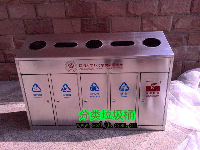 ? ? XFZ-C218分類(lèi)回收垃圾桶采用201#、202#、304#優(yōu)質(zhì)不銹鋼材料焊接成型,堅(jiān)固耐用,防火美觀。垃圾桶轉(zhuǎn)角都做了圓角處理,光滑無(wú)利口,注重細(xì)節(jié)不傷手。此不銹鋼分類(lèi)回收垃圾桶長(zhǎng)寬高為1350*400*900,根據(jù)客戶需求定制五個(gè)回收類(lèi)別,分別是塑料瓶,金屬瓶,利樂(lè)包,紙張,有害垃圾,十分契合學(xué)校的使用壞境。
