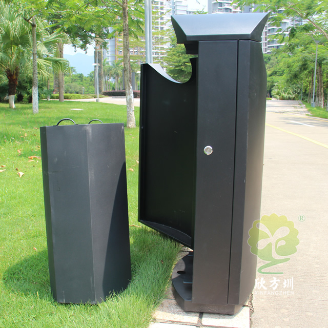 城市發(fā)展日新月異,人們對生活環(huán)境的衛(wèi)生要求也越來越高,沒有人可以容忍自己家園周圍看上去臟、亂、差。整治臟、亂、差,建設衛(wèi)生文明居住環(huán)境,是大部分城市的基本目標,居住環(huán)境的衛(wèi)生整治離不開垃圾桶的幫助,甚至垃圾桶本身就能成為城市文明的一道亮麗風景線。沒有人愿意親近一個看上去布滿污漬,臟兮兮,充滿細菌的垃圾桶,而一個看上去干凈、衛(wèi)生、美觀的垃圾桶,除了人們更愿意往里面投垃圾外,本身就能起到裝飾美化的作用。欣方圳設計生產(chǎn)的戶外噴塑單桶冷軋鋼板果皮箱就完全滿足這樣的作用。