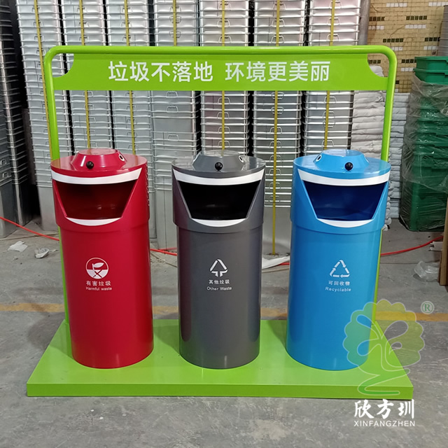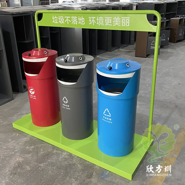 戶外圓柱形三分類鋼板垃圾桶是欣方圳設計生產的一款時尚藝術垃圾桶,這款垃圾桶工藝精湛、外形美觀、非常受市場歡迎,被許多采購客戶擺放于街道、物業小區、景區公園等。如果您有采購垃圾桶的需求,請聯系我們報價,我們也接受來圖定制,期待與您的合作。