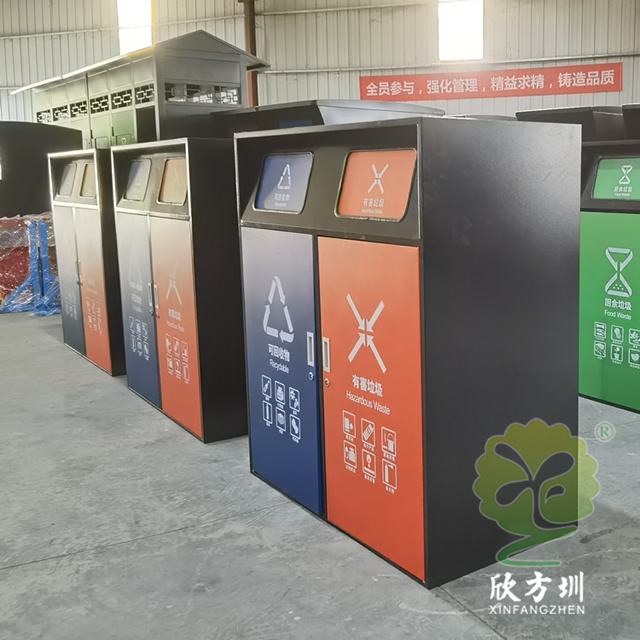 戶外組合帶蓋鍍鋅板分類垃圾桶